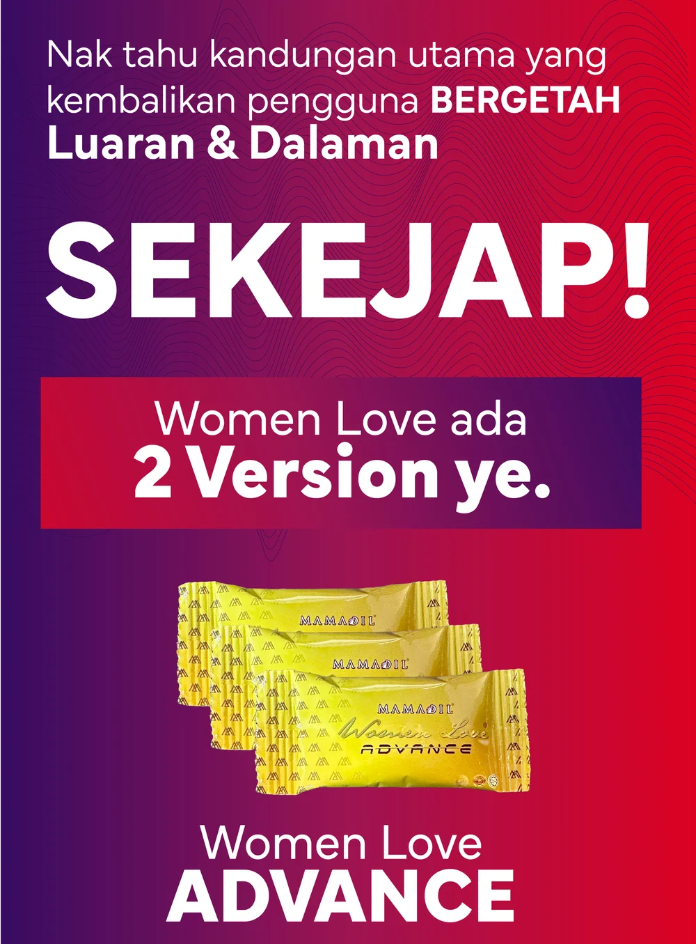 Sejak Tahun 2013 Suplemen Women Love dipasarkan dan telah bantu ramai Wanita.